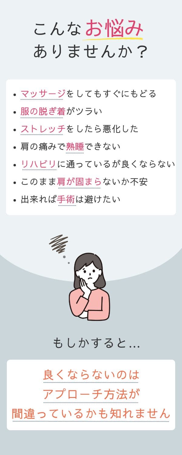 ストレッチをしても五十肩が改善しない理由は、次の通りです。